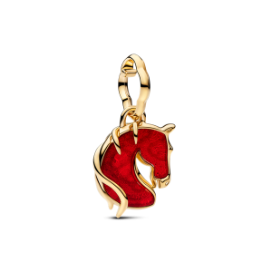 Charm treo Pandora Mạ Vàng 14K + Thủy Tinh Murano Lá Vàng Bính Ngọ – Mã Đáo Thành Công